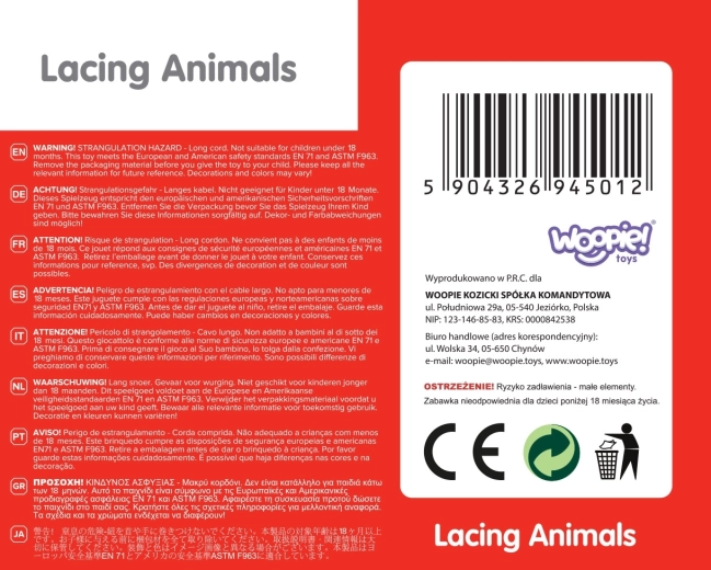 Takket være glatte kanter og sikre, miljøvenlige farver er legetøjet velegnet til de mindste. Børn træner finmotorik, lærer koncentration og forbedrer bevægelsespræcision, mens de opdager dyrenes navne og farver.