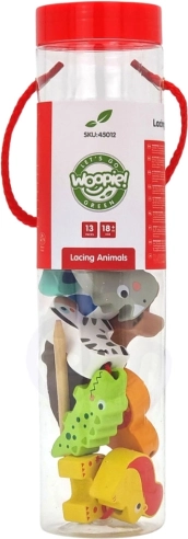 Dette kvalitets snørespil i træ fra WOOPIE i serien GREEN bringer safariens verden direkte ind på børneværelset. Hver del forestiller et andet dyr – fra den glade abe til den majestætiske løve – og støtter naturlig læring gennem leg.