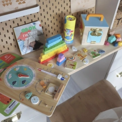 Denne rige læringsboks samler populære montessori-aktiviteter i én gennemtænkt helhed. Børn træner finmotorik, tålmodighed, balance og koncentration samt kendskab til tal og vejr. Der medfølger også en kort forældreguide med tips til, hvornår og hvordan de enkelte materialer kan introduceres i legen.