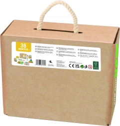 De sikre trækomponenter fra Tooky Toy er glatpolerede og farvet med giftfri farver. Takket være de mangeartede aktiviteter er sættet perfekt til hjemmeundervisning, fælles familiehygge og som en gave til treårige.