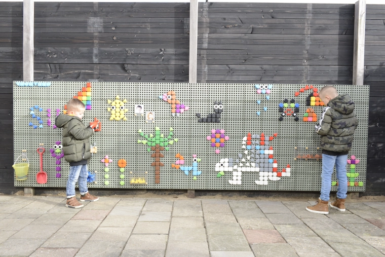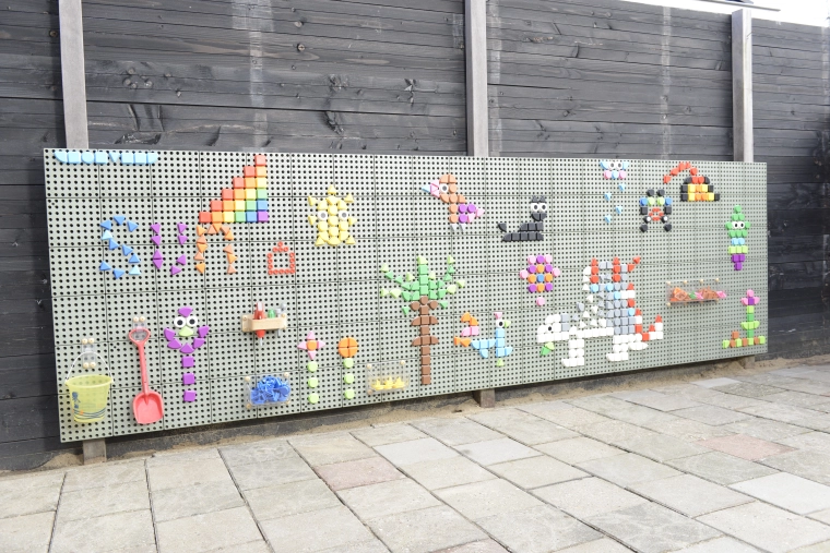 Den perforerede overflade gør det muligt at lægge farverige billeder, bogstaver og tal og udvikle fantasi samt finmotorik.