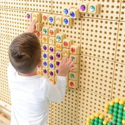 Plader med tapper sikrer hurtig montering og afmontering på kompatible pegboards – ideelt til små børnehænder.