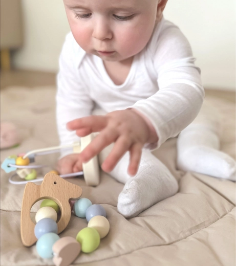 Den farverige kanin fyldt med perler fanger børns opmærksomhed og udvikler deres høresans. Den er ideel til at træne gribefærdigheder.