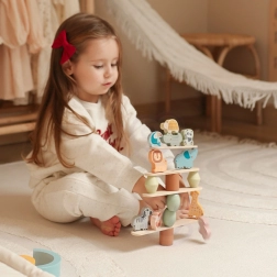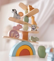 Legetøjet tilbyder tre sværhedsniveauer, tilpasset barnets alder og er ideelt for børn fra 18 måneder. Under legen forbedrer børn deres balance, udvikler evnen til præcis manøvrering og bygger imponerende balancetårne med dyr.