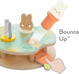 Spillet Hoppekaniner er fantastisk til at udvikle børns evne til at skelne mellem farver og former. Din opgave er at placere de tre søde kaniner i de tilsvarende åbninger og matche dem efter farve og form. Når du trykker på gulerodsstykkerne, springer kaninerne op! Legetøjet er fremstillet af høj kvalitet træ og har ingen skarpe kanter, så det er sikkert for børn.