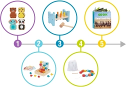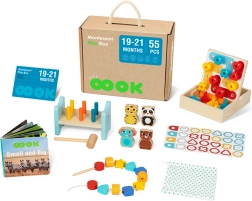 Montessori læringsboks fra TOOKY TOY er ideel til børn i alderen 19–21 måneder. Indeholder 5 forskellige spil og legetøj, der understøtter udviklingen af kognitive, emotionelle og motoriske færdigheder. Et super valg til leg og læring!