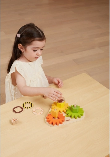 Giv dine børn timevis af sjov og læring med den motoriske sorterer med gear fra Viga. Dette legetøj er designet til at understøtte udviklingen af hukommelse, opmærksomhed, farvegenkendelse og forståelse af mekaniske principper. Børn lærer om grundlæggende fysiske principper gennem drejning af tandhjul, hvilket også hjælper med at forbedre koordination og præcision.