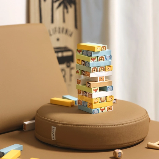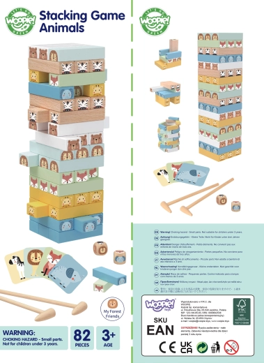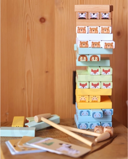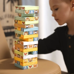 Træspillet Rystende Tårn fra WOOPRIE er et fremragende valg til at udvikle dine børns motorik og give masser af sjov! Sættet indeholder 82 dele af holdbart træ med pastelfarver og dyreklistermærker. Fantastisk til strategisk tænkning og koncentration.