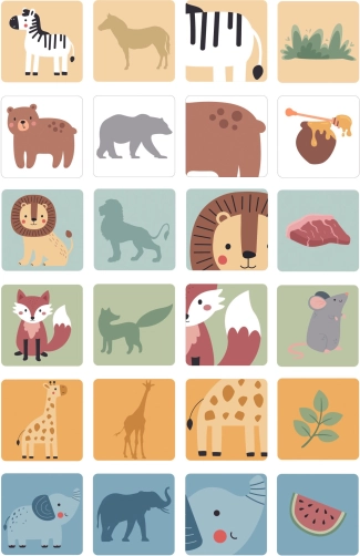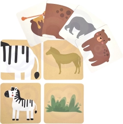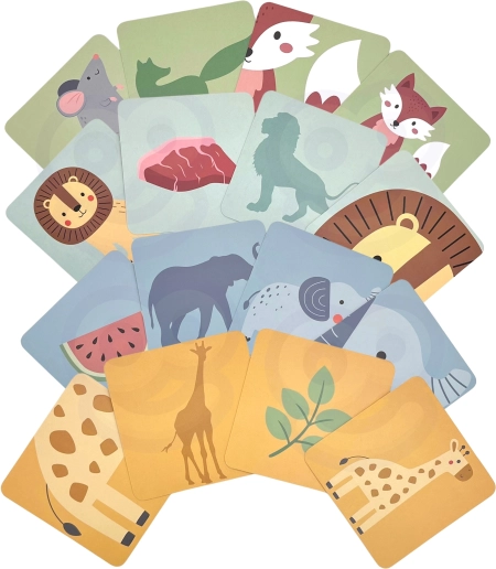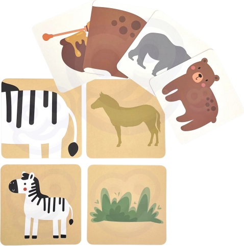 - Spil med kort: spillerne skal matche dyrene på kortene med de supplerende billeder eller skygger.