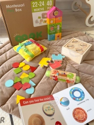 Dette montessori-sæt i træ fra TOOKY TOY er skræddersyet til børn i alderen 22–24 måneder. Med en gennemtænkt kombination af aktiviteter udvikler det sanserne (syn, berøring, hørelse), styrker psykomotorisk udvikling og bringer sjov læring gennem leg. Der medfølger også en forældreguide med tips til, hvornår og hvordan de enkelte legetøj kan introduceres.