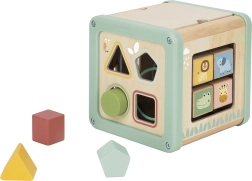 At lægge former i de matchende huller lærer barnet at genkende farver og former, mens de roterende blokke med dyremotiver styrker logik, opmærksomhed og visuel perception.
