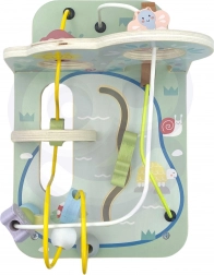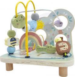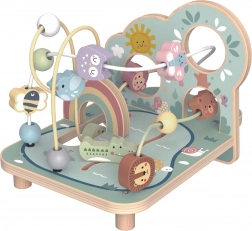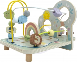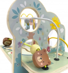 Den skovinspirerede perlelabyrint i massivt træ imponerer med sin kvalitet, pastelfarver og søde illustrationer af dyr, en regnbue og en sol. Børn flytter perler og former langs tre snoede baner, træner fingerpræcision og koncentration og oplever glæden ved at fuldføre ruten.