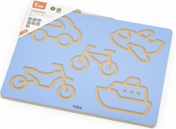 Oplev en sjov vej til de første strøg og bogstaver. Den træbaserede VIGA-tavle med køretøjsmotiver guider børn til flydende håndbevægelser, korrekt tryk og strøgsretning. Træningen sker naturligt gennem leg – gentagen optegning af rillerne styrker koncentrationen og sikkerheden i hånden.