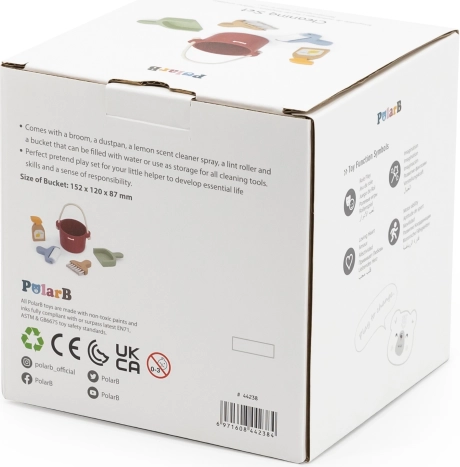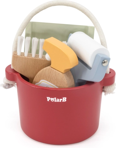 Giv børn glæde ved rolleleg med træ-rengøringssættet POLARB. Spanden med et robust rebskaft fungerer også som et smart sted til nem opbevaring af alle redskaber. Trædelene ligger godt i hånden, er holdbare og visuelt tiltalende takket være blide pastelfarver.