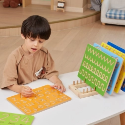Standeren er udstyret med praktiske pinde for stabil indføring af de enkelte plader, så hver tavle eller hvert puslespil har sin plads. Kapacitet op til 10 stk. gør det let at rotere lege og aktiviteter og muliggør samtidig effektiv organisering og attraktiv præsentation.