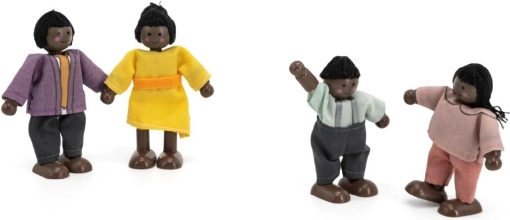 Familiesættet er ideelt til at udvikle fantasi og finmotorik samt sociale færdigheder. Takket være de bevægelige lemmer kan dukkerne nemt sættes, stilles og poseres – børn skaber naturligt deres egne historier. Kvalitetstræ og bløde tekstiloutfits giver legetøjet et behageligt udseende og touch.