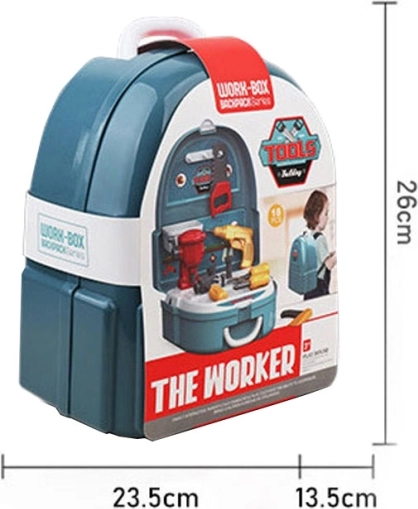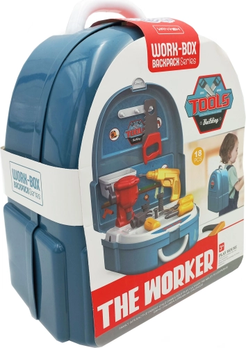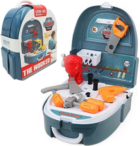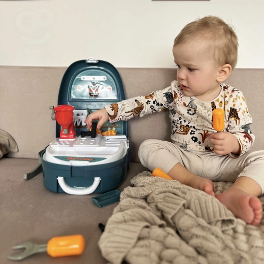 Sættet til den lille gør-det-selv’er i en praktisk rygsæk fra WOOPIE forvandler enhver leg til et kreativt eventyr. Den kompakte rygsæk bliver til et mini-værksted 2-i-1 og indeholder 18 dele – sav, hammer, skruetrækker, nøgle, boremaskine, skruer og mere. Børn kan tage legetøjet med overalt og udvikle finmotorik, fantasi og rolleleg – som en rigtig håndværker fra 3 år.