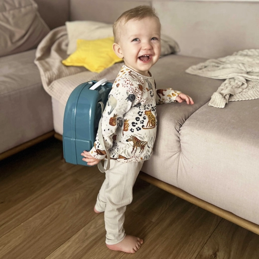 Den lette rygsæk bliver på et øjeblik til en overskuelig arbejdsstation. Takket være stropperne og det solide håndtag kan barnet tage sit værksted med sig hvor som helst.