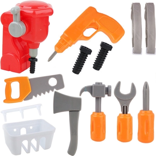 Sættet tilbyder et bredt udvalg af værktøj til sikker og realistisk leg – fra sav og hammer til skruetrækker og nøgle samt en børneboremaskine med skruer og kurv til småting. Legen stimulerer kreativitet, hånd-øje-koordination og læring af grundlæggende håndværksfærdigheder.