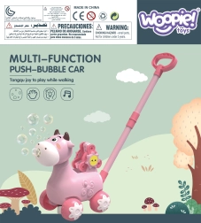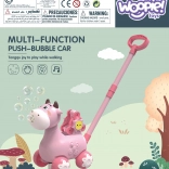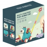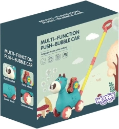 Gåvognen i ko-design fra WOOPIE er en ideel hjælper, når barnet skal lære at gå. Børn kan skubbe deres yndlingsko foran sig, som under kørslen slipper bobler ud direkte fra munden. Skru blot beholderen med opløsningen på (pakken indeholder 2 beholdere), og så kan legen begynde. For stemningen sørger behagelige melodier, som kan tændes og slukkes med en knap.