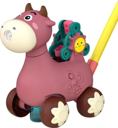 Den søde WOOPIE gåvogn formet som en lyserød ko hjælper børn med at træne de første skridt og samtidig have det sjovt. Den tilbyder bobleskabning, melodier og en roterende rulle med bogstaver for legende læring. Takket være det behagelige håndtag er den velegnet til små hænder og understøtter koordinations- og motoriske færdigheder.
