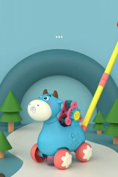 Intuitiv betjening via tænd/sluk-knap gør det let at tilpasse lydeffekterne til situationen. Det komfortable håndtag og den robuste udførelse gør koen til en ideel makker til hjemmetræning i at gå og udvikling af motoriske færdigheder.