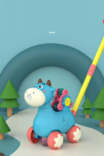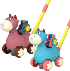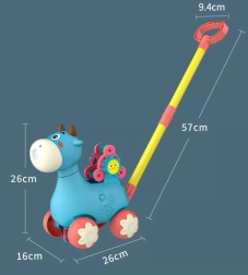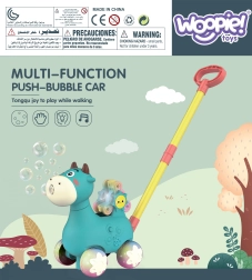Den søde WOOPIE ko-gåvogn hjælper børn med at stå mere sikkert på benene og giver masser af sjov. Når den skubbes, blæser den bobler ud af munden, spiller melodier og har en roterende karrusel med bogstaverne A, B, C til de første skridt i læringen. Med en komfortabel håndtag og stabil konstruktion understøtter den koordinering samt fin- og grovmotorik for børn fra 3 år.