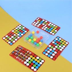 Spillet Hurtige fingre kommer med en unik base med cirkule6re 0aben, der giver mulighed for at flytte farverige kugler kun ved hj0e6lp af fingrene. P0e5 hver kort er der en universal sort-hvid skabelon p0e5 bagsiden, som b08rn kan farvel0e6gge efter deres fantasi og skabe deres eget mosaik.