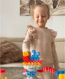 Nyd timer med sjov med spillet Balancerende Dyr, som er ideelt både til solospillere og par. Spillet er designet til at udvikle logisk tænkning og lære børn koncentration. Målet er at placere så mange dyr som muligt på den balancerende sten uden at konstruktionen falder sammen. Prøv forskellige sværhedsgrader - fra stabil base til drejelig, som bevæger sig 360 grader.