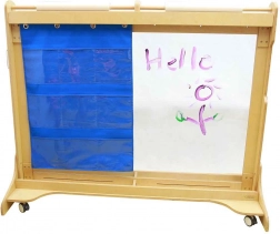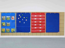 - Tre rækker lommer - gør det muligt at udstille undervisningsmidler såsom fotografier eller bøger.