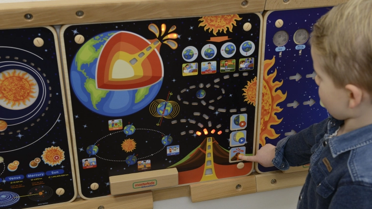 Masterkidz læringspanel til børn med illustrationer af Jorden og solsystemet. Læring gennem leg. Fleksibel anvendelse.