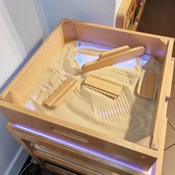 Den træbaserede Masterkidz sandmaling-ramme er et gennemtænkt læringsredskab, som holder sandet sikkert i rammen og på bordet – børn kan fordybe sig i at skabe, og forældre får minimalt oprydning. Den høje kvalitet og de robuste materialer er ideelle til daglig leg derhjemme, i børnehaver og i offentlige legeområder. Passer perfekt til Montessori-tilgangen.