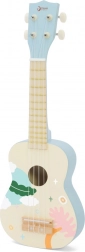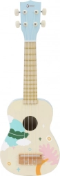 Dette blå træ-ukulele efterligner et rigtigt instrument og er ideelt til de første skridt ind i musikkens verden. Børn lærer grundlæggende akkorder og rytme, kan give deres første hjemme-koncert og samtidig udvikle sans for musik og selvudtryk. Overfladen er lakeret med ugiftige farver, og konstruktionen er lavet af holdbare materialer for lang levetid.
