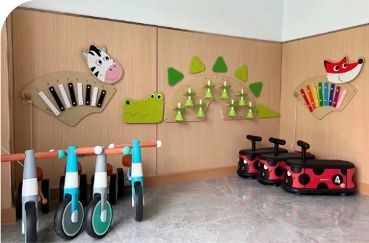 Vægmonteret design sparer plads og skaber en attraktiv zone til fælles leg og musikalsk udvikling.
