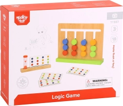 Det sjove logikspil fra TOOKY TOY udvikler farvegenkendelse, logisk tænkning og finmotorik. Børn flytter farvede skiver efter mønstre fra kortene og prøver at samle dem korrekt inden for timeglassets tidsgrænse. Sættet indeholder en trærammeplade, et timeglas og 15 tosidede kort med 30 mønstre. Sikkert, holdbart og ideelt til børn fra 3 år.