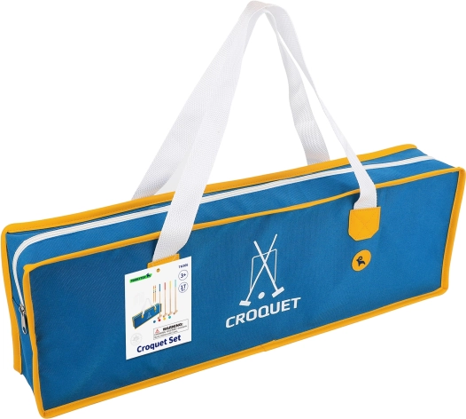 Indholdet dækker alt til op til 4 spillere: køller, kugler, pæle og en praktisk transporttaske for nem opbevaring og transport. Kroket fremmer sund bevægelse, holdsamarbejde og fair play.
