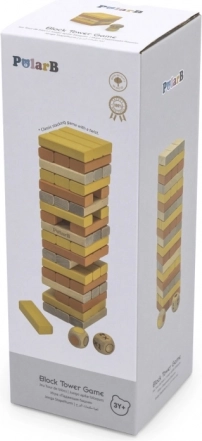 Det generøse antal klodser gør det muligt at bygge et højt tårn og forlænge spilletiden. Glatte kanter og robust træ sikrer et behageligt greb og lang holdbarhed.