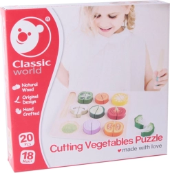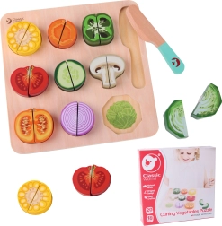 Dette sæt er den perfekte tilføjelse til rollespil fra en tidlig alder og bringer ikke kun sjov, men også pædagogisk værdi. Det indeholder 20 forskellige elementer, inklusive en tosidet plade, kniv og grøntsager. Legetøjet er beregnet til børn fra 18 måneder og er lavet af lakeret træ, malet med ikke-giftige farver, hvilket sikrer dets fulde sikkerhed.