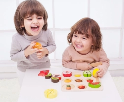 Dette sæt hjælper børn med at lære forskellige typer frugter og farver på en sjov måde.