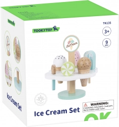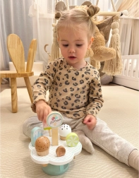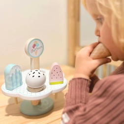 Dette vidunderlige træsæt med is er ideelt til børn, der elsker kreativ leg. Pastelfarver og omhyggelig udførelse sikrer timevis af sjov ved isbod-leg eller som udstyr i legekøkkenet. Et sundt valg for udvikling af børns kreativitet og sociale færdigheder. Magneter giver stabilitet, hvilket gør legen endnu mere behagelig.