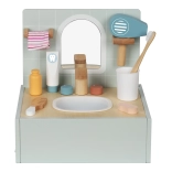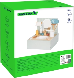 Forvandl daglige hygiejnerutiner til kreativ leg med den træbadeværelse fra Tooky Toy. Dette søde mini-sæt indeholder alt, hvad der er nødvendigt til rolleleg med badeværelsesscener, inklusive spejl, falsk håndvask med hane og realistiske tilbehør.