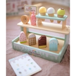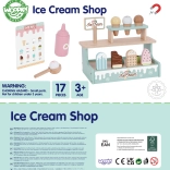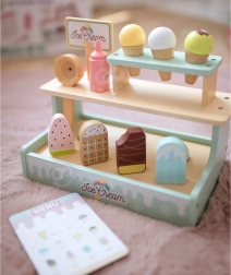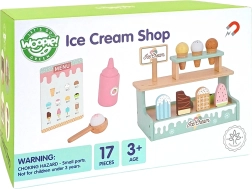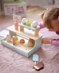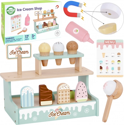 Oplev butikkens magi med den stilfulde isbod WOOPIE GREEN. Børn kan servere kugleis og ispinde, stable smage med magnetiske iskugler og vælge fra menuen. Legen udvikler hånd-øje-koordination, kreativitet og sociale færdigheder ved kundebetjening.