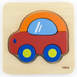 Træblok-puslespil i form af en bil fra VIGA, der byder på holdbarhed og farverig tiltrækningskraft.