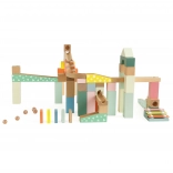 Træsættet til at bygge en kuglebane fra Classic World er egnet til børn fra 3 år. Legetøjet indeholder 62 forskellige og store blokke, der giver uendelige muligheder for at bygge kreative baner. De pastelagtige farver og ugiftige overflader sikrer både sikkerhed og et æstetisk udtryk.