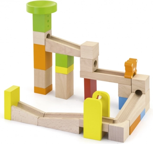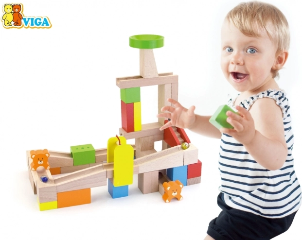 Denne træ-kuglebane fra VIGA giver børn timer med både leg og læring. Af varierede klodser, ramper, søjler og en tragt bygger du nemt utallige baner, hvor kuglerne ruller jævnt. Sættet indeholder også dekorative og legende elementer som trapper og bjørne, der giver konstruktionerne karakter og inspirerer til historiefortælling.