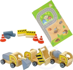 - 3 byggepladskøretøjer: tipvogn, cementblander, gravko