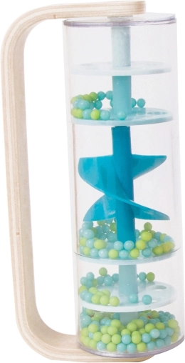 Denne veludførte regnstav med kugler tilbyder både visuel og lydmæssig oplevelse – kuglerne flyder roligt ned ad spiralen og skaber en behagelig “regn”-effekt. Takket være naturligt træ og et robust, transparent rør er legetøjet sikkert, solidt og indbyder børn til at udforske lyde og rytmer.