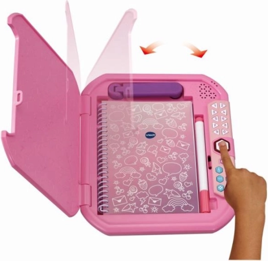 Opbevar alle dine hemmeligheder sikkert med Vtechs smarte dagbog! Dette sjove pengeskab åbnes kun med din egen kode og giver dig UV-lys til usynlige beskeder, magisk pen, blok med 30 sider og minispil til hukommelsestræning. En fantastisk gave til børn, der elsker kreativitet, hemmeligheder og at beskytte deres skatte.