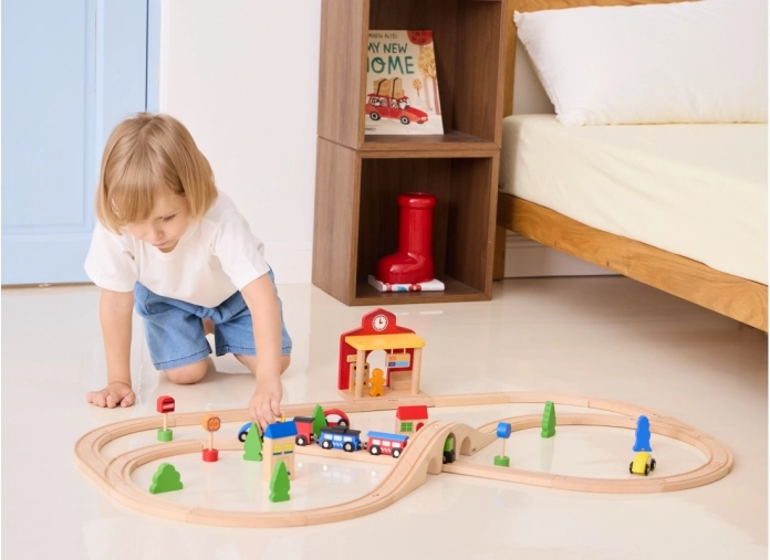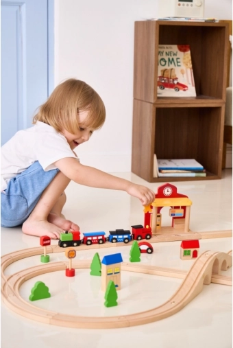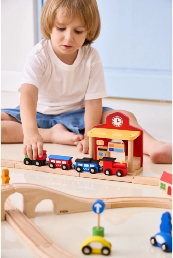 Stationen er ideel til børnenes scener – fra billetsalg til togankomster og -afgange. Dimensionerne er designet til nemt at passe på de fleste legeflader og være kompatible med almindelige træksskiner. Legen udvikler finmotorik, hånd-øje-koordination og sociale færdigheder.