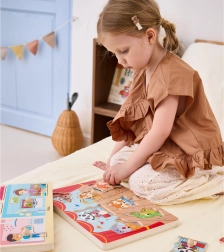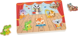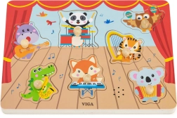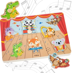 Træd ind i musikkens og læringens verden med det originale træpuslespil fra VIGA, hvor dyremusikanter vækker dit barns fantasi. Når en brik løftes og placeres igen, hører barnet en realistisk lyd af et musikinstrument, hvilket fremmer læring gennem erfaring.